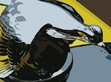This is new artwork I did of a 1956 Ford Fairlane Sunliner. (You can see an in-progress image of this artwork on a previous post.) I like two-tone paint and side chrome treatment on these cars. The size of the artwork is 18 x 24. Below is an image showing some of the detail.